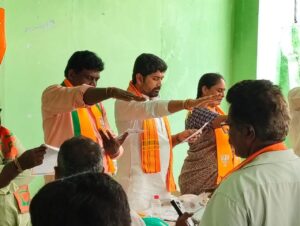 గుంటూరు జిల్లా తెనాలి నియోజకవర్గం కొల్లిపర మండల సంస్థాగత పర్యటనలో భాగంగా మండల కమిటీ, బూతు కమిటీలు, శక్తి కేంద్రాలు పూర్తి చేసి మండలంలో పార్టీని బలోపేతం చేయాలని, కేంద్ర ప్రభుత్వ పథకాలను ఇంటింటికి చేర్చాలని అలాగే ఆత్మనిర్బర్ భారత్ లో భాగంగా స్థానికులను స్వదేశీ వస్తువులను కొనాలని ప్రోత్సహించడంతో పాటు ఇంటింటా స్వదేశీ – ప్రతి ఇంటా స్వదేశీ పాంప్లేట్లను స్టిక్కర్లను భారతీయ జనతా పార్టీ ముఖ్య అధికార ప్రతినిధి వల్లూరు జయ ప్రకాష్ నారాయణ అందచేశారు. . ఈ కార్యక్రమంలో మండల అధ్యక్షులు మురళి గారు,స్థానిక బిజెపి నాయకులు కార్యకర్తలు పాల్గొన్నారు.